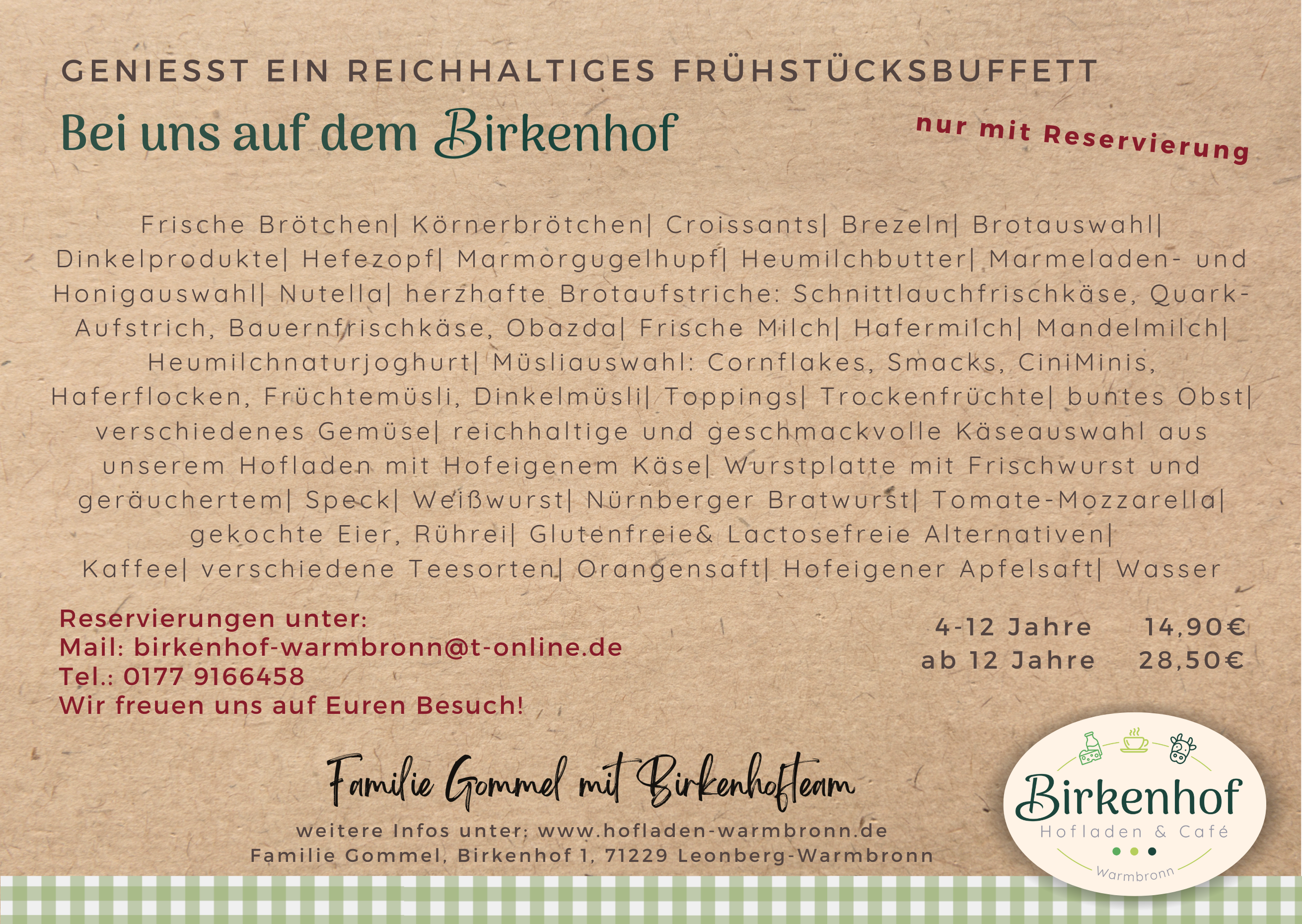 Samstags Frühstücksbuffet | Samstags längere Öffnungszeiten | Sonntagscafé